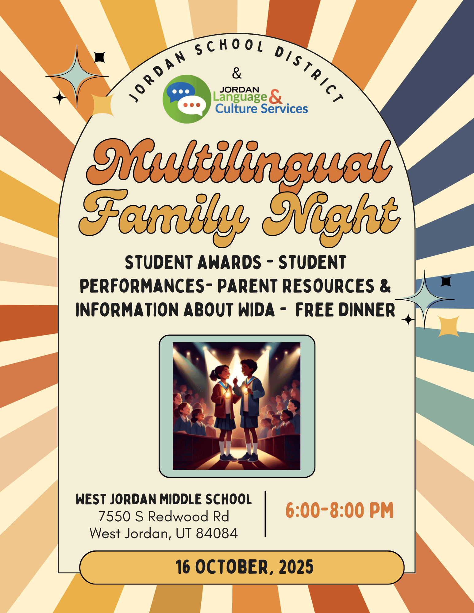 Come and watch our students receive awards and see them perform. Find out about parent resources, information about WIDA and get a free dinner.